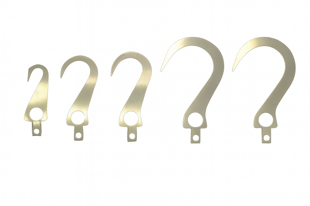 - Five (5) plain-tip stainless steel hooks (one ½”, two 1”, and two 2”)