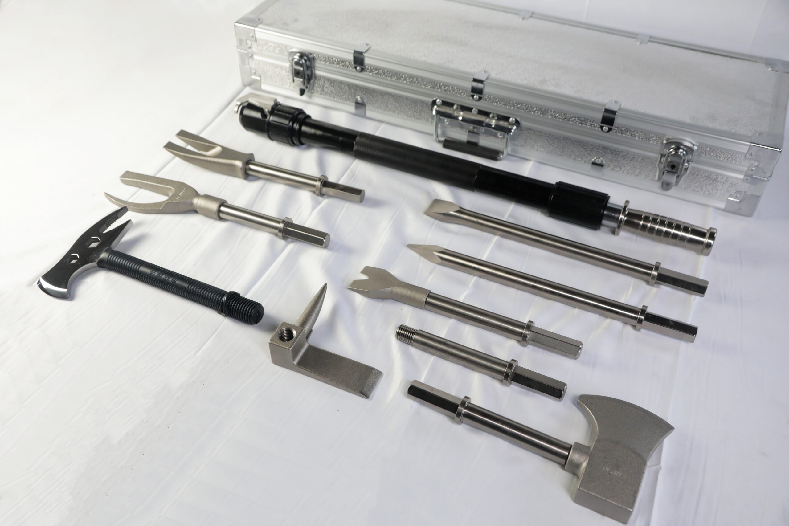 EDI’s enhanced handheld demolition tool kit is suitable for breaking and dismantling doors and windows, padlocks, metal, concrete, etc. The kit’s functions include pulling, prying, chopping, twisting, tearing, knocking, chiseling, cutting, smashing, and more. The impact heads are made of high-strength tool steel, which can quickly and effectively break doors, pry locks, chisel through bricks, concrete walls and floors, cut automotive metal sheets and various composite materials. No external power required; suitable for various rescue operations, especially earthquakes, car accidents, etc.